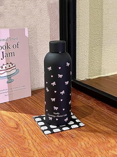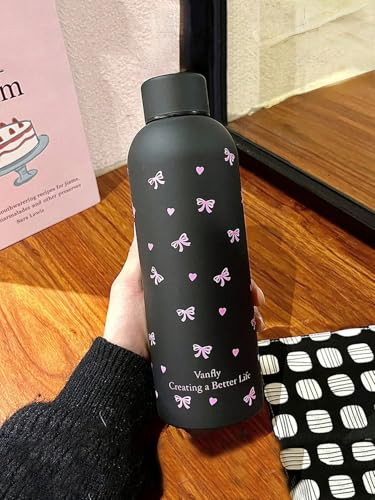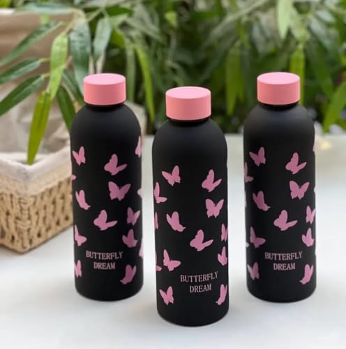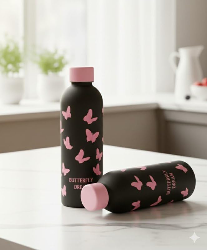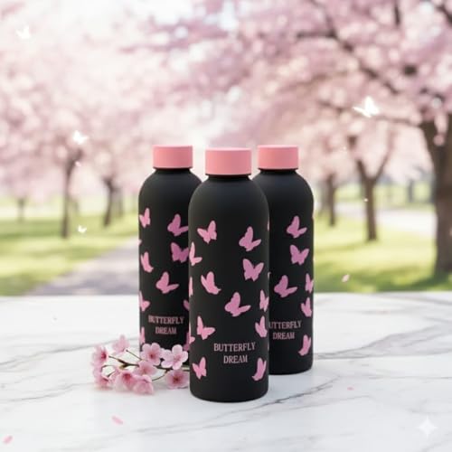 Generic - زجاجة مياه معزولة من الفولاذ المقاوم للصدأ سعة 500 مل بتصميم فراشة وردية - ترمس حراري مزدوج الجدار لحفظ الماء الساخن والبارد للاستخدام اليومي