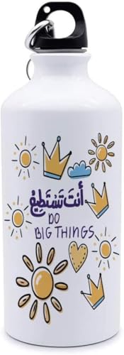 Generic - زجاجة مياه الومنيوم 500 مل - تصميمات مطبوعة تحفيزية عربية، متينة وخفيفة الوزن مع مشبك حلقة تسلق - لصالة الالعاب الرياضية والمدرسة والمكتب والاستخدام الخارجي (انت تستطيع)