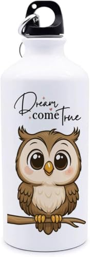 Generic - زجاجة مياه الومنيوم 500 مل - تصميمات لطيفة مطبوعة بومة خفيفة الوزن ومتينة مع مشبك حلقة تسلق - للمدرسة والمكتب وصالة الالعاب الرياضية والاستخدام الخارجي (تصميم رقم 6)