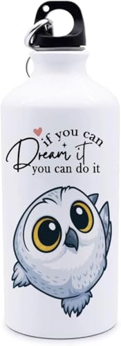 Generic - زجاجة مياه الومنيوم 500 مل - تصميمات لطيفة مطبوعة بومة خفيفة الوزن ومتينة مع مشبك حلقة تسلق - للمدرسة والمكتب وصالة الالعاب الرياضية والاستخدام الخارجي (تصميم رقم 8)