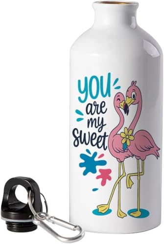 Generic - زجاجة مياه الومنيوم 500 مل - تصميم فلامنجو، متينة وخفيفة الوزن مع مشبك حلقة تثبيت، زجاجة رياضية قابلة لاعادة الاستخدام لصالة الالعاب الرياضية والسفر والمكتب والاستخدام الخارجي (You are My sweet)