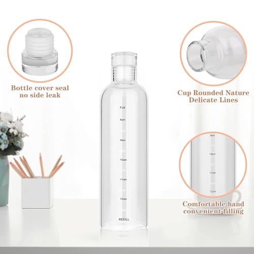 Plan A - زجاجة مياه أكريليك شفافة سعة 500 مل مع غطاء محكم الإغلاق وعلامات وقت إبداعية، مقاومة للتسرب، مناسبة للماء والعصائر والحليب، تصميم أنيق وخفيف للحمل في المكتب والرياضة والسفر (وردى شفاف)