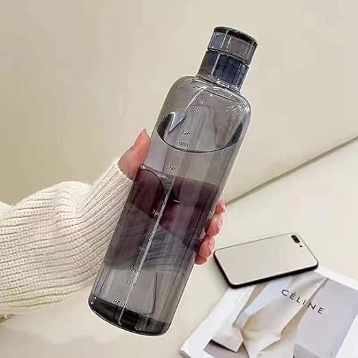 Generic - زجاجة مياه بلاستيكية شفافة بمقياس تدريجي، 500 مل، مع غطاء محكم (اسود مدخن)