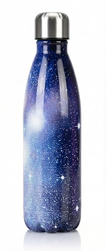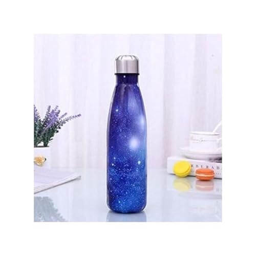 Generic - ترمس حراري معزول بتفريغ الهواء بجدار مزدوج من الفولاذ المقاوم للصدأ خالي من مادة بيسفينول أ لحفظ المشروبات الساخنة والباردة لمدة 8 ساعات والاستخدامات الرياضية، 500 مل (لون أزرق جالاكسي مزين بنجوم)