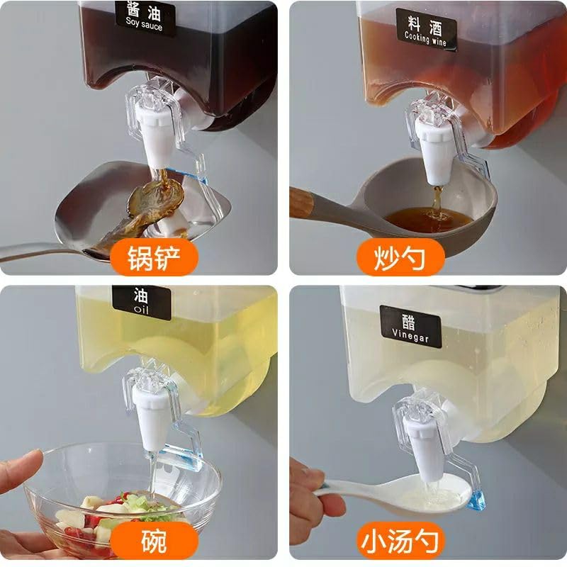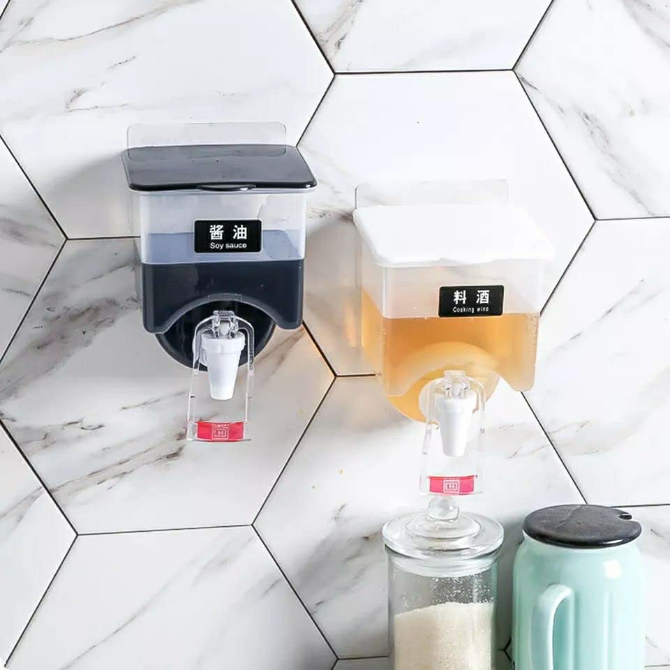 Generic - موزع زيت وخل سعة 500 مل مع حنفية، حاوية متعددة الأغراض تثبت على الحائط للصلصات والصابون والشامبو وجل الاستحمام، زجاجة شفافة متينة مع لاصق قوي
