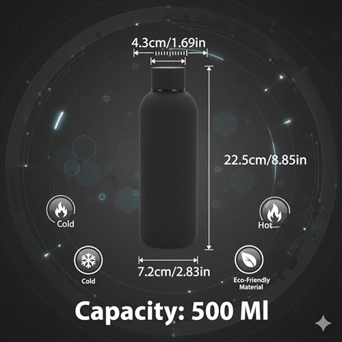 Generic - زجاجة مياه حرارية ستانلس ستيل سعة 500 مل – مزدوجة الجدار بفاكيوم، مانعة للتسرب، تحافظ على السخونة والبرودة، خفيفة ومناسبة للرياضة والمكتب والمدرسة والسفر