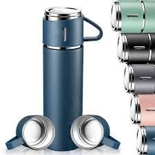 Generic - مج حراري بسعة 500 مل مع 3 أكواب للشرب – حافظة مشروبات ساخنة وباردة للاستخدام اليومي والسفر مع حقيبة حمل وعلبة تقديم