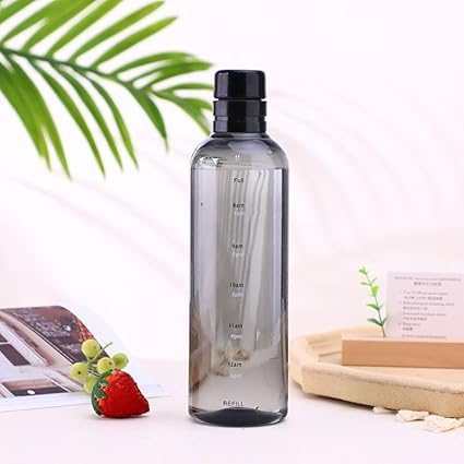 Generic - زجاجة مياه 500 مل مع علامات زمنية قابلة لإعادة الاستخدام شرب بلاستيكية للرياضات الخارجية (اسود)