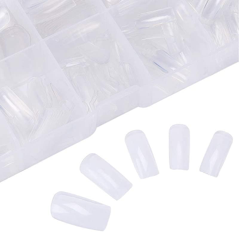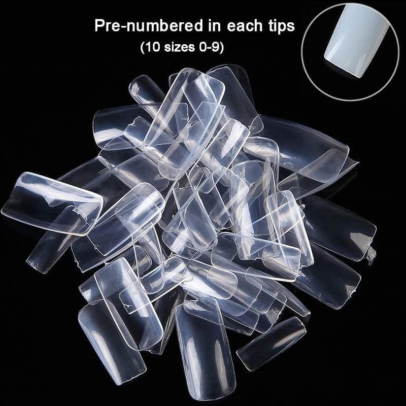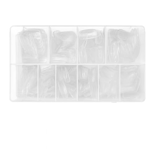 SNS SECRET NAILS SYSTEM - أطراف أظافر صناعية شفافة بتغطية كاملة مع شنطة تخزين، 10 مقاسات لوصلات الأظافر وتزيينها بالضغط متينة وخفيفة الوزن سهلة التشكيل والبرد، بمنحنى طبيعي، للاستخدام في صالونات التجميل والمنزل، 500 قطعة