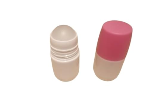 Generic - عبوة فارغة بلاستيك قابلة لاعادة التعبئة لتعبئة مزيل العرق البليه بسعة 50 ملل (ابيض وغطاء بينك)