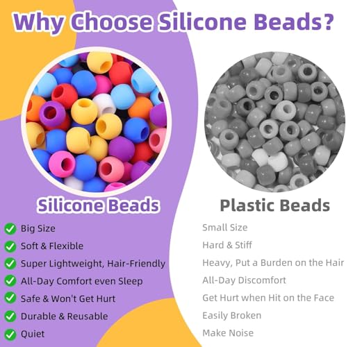 - نمط وشرارة الإبداع: مثالية للضفائر والالتواءات والمشابك والمزيد! تنزلق هذه الخرزات المصنوعة من السيليكون للشعر دون عناء على أي تصفيف، مما يضيف سحرًا فوريًا. قم بتحويلها إلى إكسسوارات تصنعها بنفسك - اصنع أساور أو قلادات نابضة بالحياة لإثارة الخيال. الهدية الملهمة التي تجلب كل فكرة إلى الحياة!