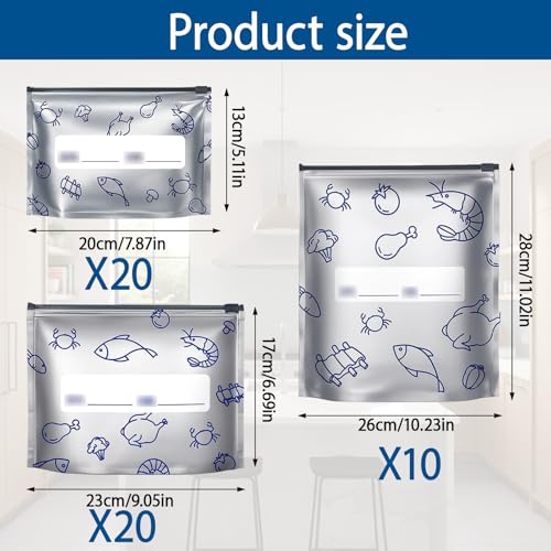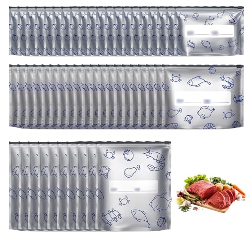 ROBGZMQW - اكياس من رقائق الالومنيوم من 50 قطعة، اكياس فريزر الومنيوم قابلة لاعادة الاستخدام، اكياس تخزين قابلة للغلق، 3 احجام لتخزين الطعام، تنظيم اعداد الوجبات، تنظيم اغراض المؤن، كراف