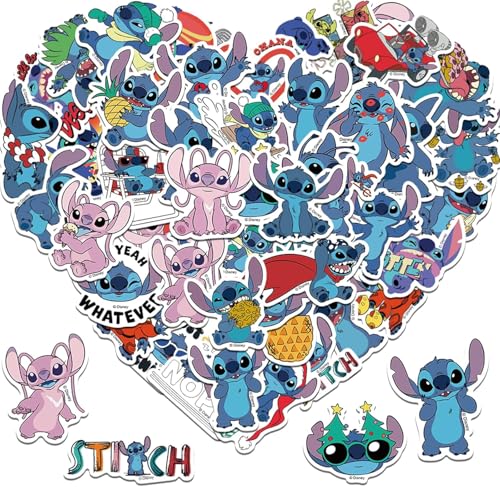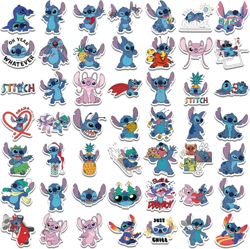 fashion mania - 50 قطعة من ملصقات ستيتش اللطيفة للاطفال، ملصق فينيل مقاوم للماء لزجاجة المياه واللاب توب