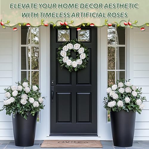 - جمال واقعي: مصنوعة من بتلات وأوراق حريرية، هذه الزهور الصناعية البيضاء تلتقط جوهر الأزهار الطبيعية، مما يضيف لمسة من الأناقة إلى أي مساحة دون القلق من الذبول أو الحاجة إلى الري. السيقان الطويلة المتينة مصنوعة من سلك معدني مرن ملفوف بالبلاستيك، مما يضمن المتانة وسهولة الترتيب، ويسمح لك بثنيها وتعديلها لتحقيق المظهر المرغوب فيه دون أن تنكسر. للحصول على لمسة أكثر واقعية، تتميز السيقان بأشواك صناعية - تعامل معها بحذر.