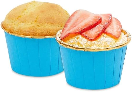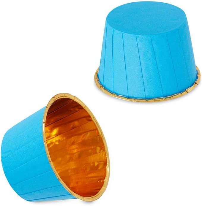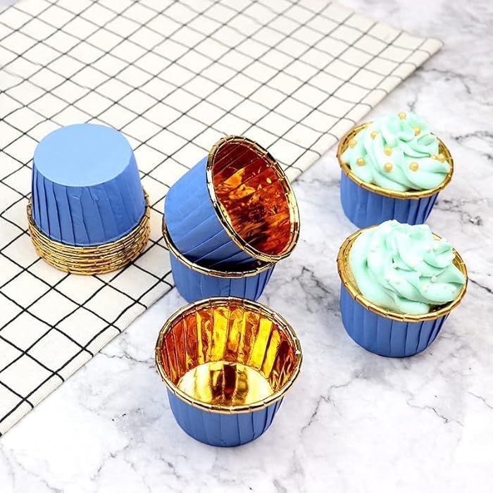 Generic - 50 قطعة من بطانات الكب كيك والمافن الذهبية للكب كيك، أكواب خبز ورقية للكيك، أدوات معجنات، لوازم الحفلات، قالب خبز للمطبخ (أزرق)