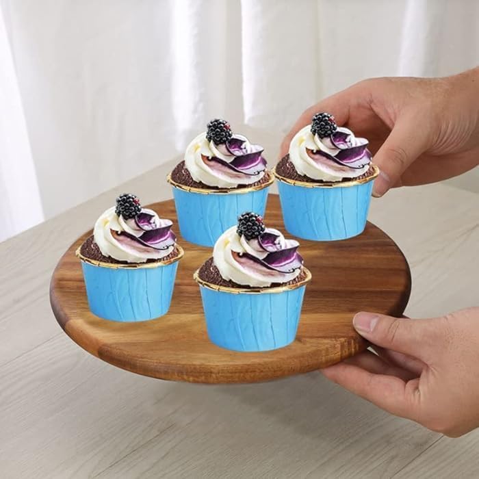 - تصميم فاخر: أكواب خبز أنيقة باللونين الأزرق والذهبي مع جوانب متعرجة، مصنوعة من الستيل الكربوني المتين مع سطح غير لاصق للحصول على كب كيك ومافن مثالي