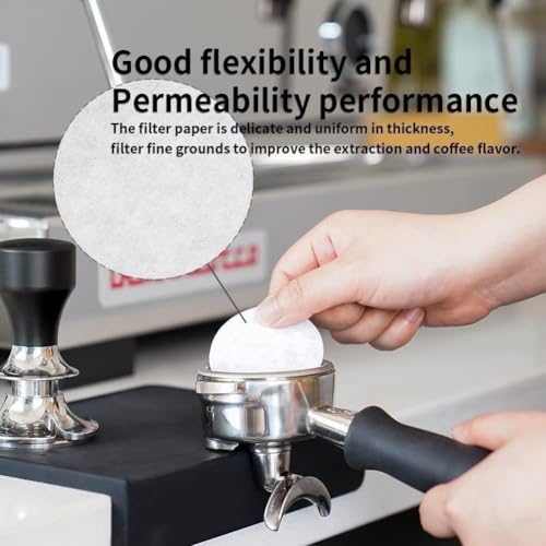 - ورق فلتر قهوة اسبريسو 51 ملم 51 ملم، 100 قطعة من ورق فلتر القهوة المستدير غير القابل للتبييض، ورق فلتر قهوة بالشاشة الخلفية