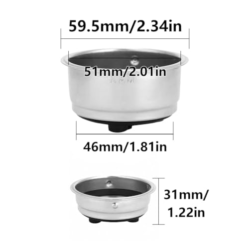 - سلة فلتر القهوة مقاس 51 ملم: تتميز سلة فلتر القهوة القابلة للفصل مقاس 51 ملم بتصميم مسامي ومصفاة دقيقة للغاية، مما يضمن تأثير ترشيح قهوة فائق؛ مع سلة فلتر القهوة المصنوعة من الفولاذ المقاوم للصدأ مقاس 51 ملم، يمكنك تحضير أي نوع من القهوة بسهولة، حيث يمنع فلتر القهوة الدقيق تدفق مسحوق القهوة ويضمن مذاقًا أغنى وأكثر نعومة.