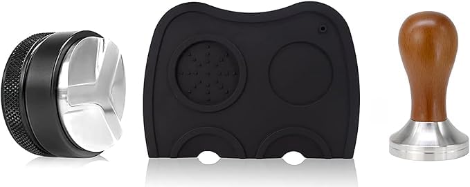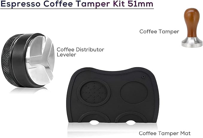 - 【محتويات العبوة】 مكبس قهوة إسبريسو بقاعدة 58 ملم غير قابل للصدأ ومقبض خشبي لعمال المقاهي والمطابخ، قاعدة قهوة، موزع قهوة بعمق 51 ملم، موزع قهوة قابل للتعديل