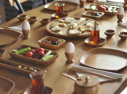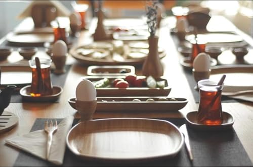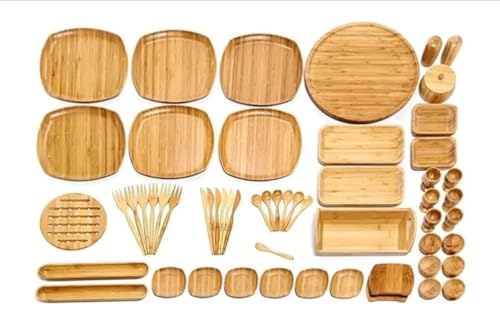 Generic - طقم عشاء فاخر مستورد مصنوع من خشب البامبو المعمر 54 قطعة صناعة تركية عالية الجودة من الخيزران الفاخر 54 قطعة من تركيا