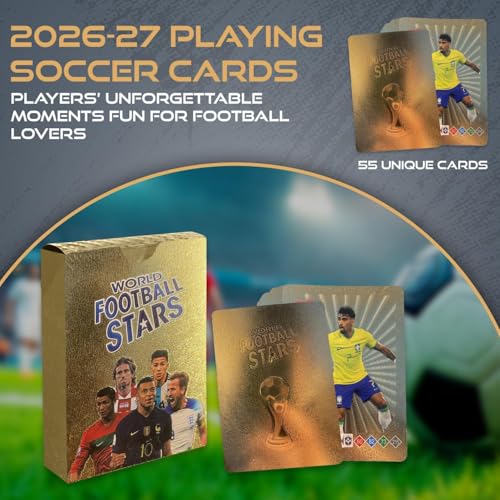 Generic - مجموعة بطاقات نجوم كرة القدم العالمية (الإصدار الذهبي الفاخر) - 55 بطاقة فريدة - بطاقات لعب وتجميع مقاومة للماء والتمزق، مرنة وعالية الجودة لهواة التجميع والمشجعين (موديل 2026-2027)