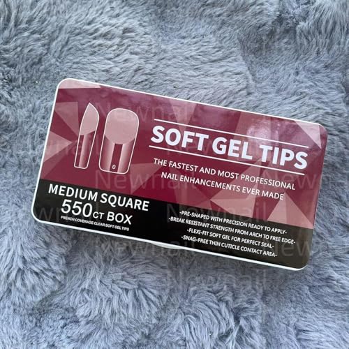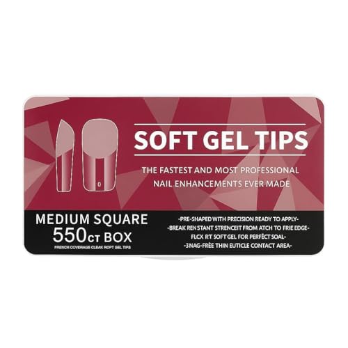 SNS SECRET NAILS SYSTEM - أظافر صناعية للتركيب بالضغط بلون نصف مطفي ممسبقة الحفر، أطراف أظافر اكريليك بتغطية كاملة لوصلات الأظافر، أظافر متينة للتركيب الذاتي والاستخدام المنزلي والاحترافي، 550 قطعة (مربعة متوسطة، شفاف)