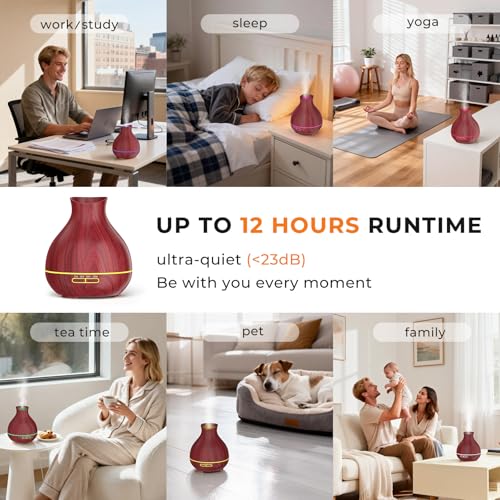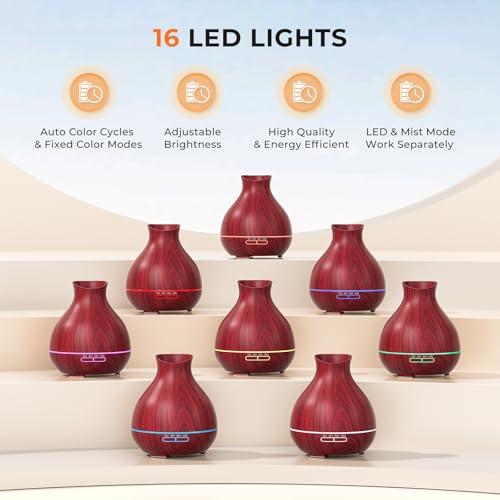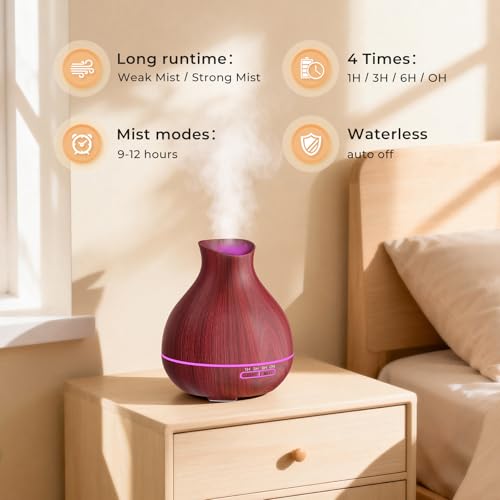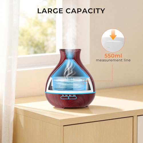 BZseed - جهاز توزيع الزيوت العطرية، موزع عطري بتصميم حبيبات خشب مع بخاخ مرطب وتايمر لغرفة كبيرة للاستخدام المنزلي مع إيقاف تشغيل اوتوماتيك عند نفاد الماء وسبعة ألوان متغيرة للإضاءة، سعة 550 مل