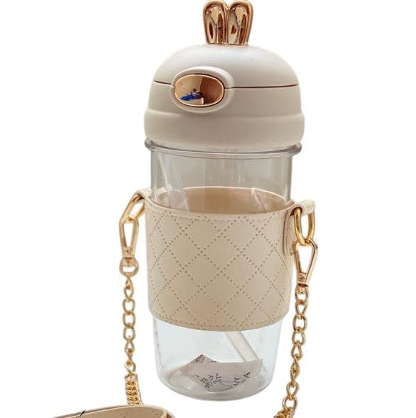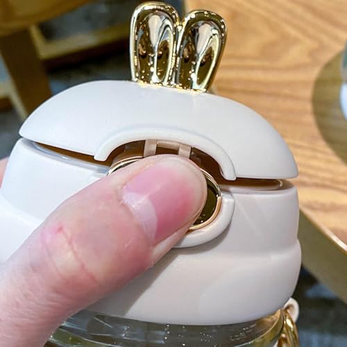Spaceshoop - زجاجة مياه بلاستيك بتصميم عصري لطيف بأذني أرنب مزودة بشفاطة وتتميز بسعة 550 مل للأطفال (أبيض)