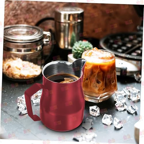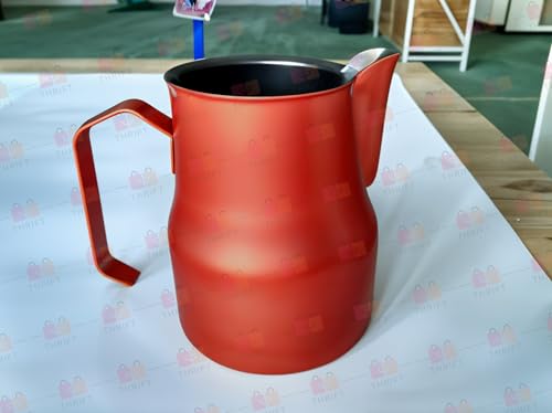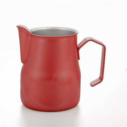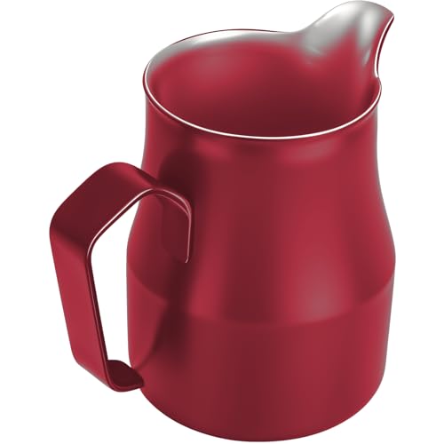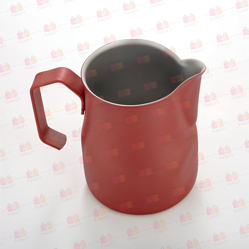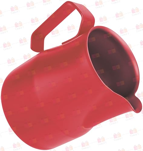 Thrift - ابريق صنع رغوة الحليب من الستانلس ستيل سعة 550 مل - ابريق تبخير اسبريسو 304 امن غذائيًا مع فوهة انسيابية ومقبض مضاد للحروق - ابريق قهوة لاتيه للمنزل والمقهى والباريستا (احمر)