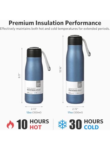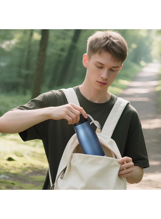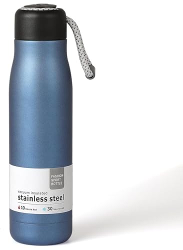 generic - زجاجة مياه ستانلس ستيل 550 مل بجدار مزدوج معزول بتفريغ الهواء مع فوهة وغطاء جوال مقاوم للتسرب (ازرق)