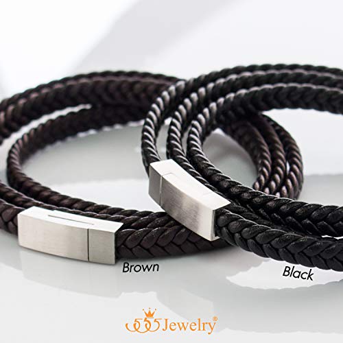 generic - سوار من الستانلس ستيل المضفر بمشبك مغناطيسي بحبل جلدي ملفوف من 555 جوليري، مقاس XL، معدن