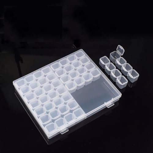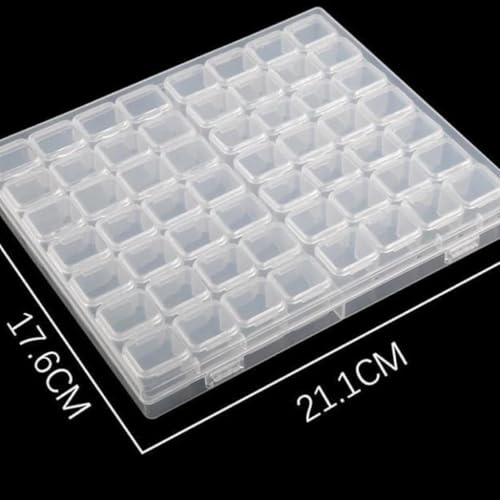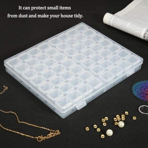 Happy Home - صندوق منظم بلاستيكي شفاف مكون من 56 شبكة، حاوية تخزين مجوهرات الاحجار الكريمة مع فواصل لتنظيم الخرز والاقراط والطلاء الماسي، صندوق تخزين البذور والحرف اليدوية، صناديق ادوات لولبية للاجزاء الصغيرة