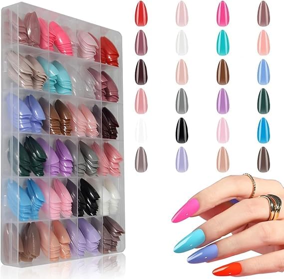 Generic - أطقم أظافر تركيب عن طريق الصغط - أظافر صناعية لامعة مستقيمة - تغطي الظفر بالكامل مع أطراف أكريليك – لتصاميم مانيكير وتزيين الأظافر للنساء والفتيات، 24 لون، 576 قطعة
