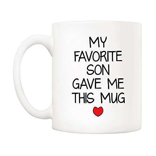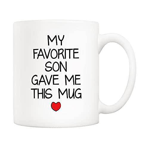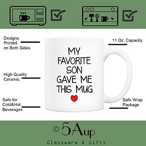 5Aup - ٥ اوب مج بعبارة My Favorite Son Gave Me This مناسب كهدية للكريسماس كوب مرح لعيد الاب وعيد الام من الابن - هدية عيد ميلاد مبتكرة للآباء والرجال والنساء 11 اونصة سيراميك أبيض