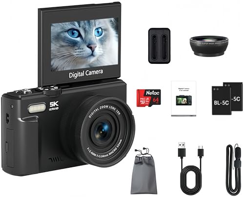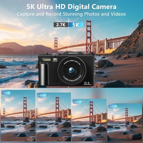 - 【كاميرا التوجيه والتصوير سهلة التشغيل】مصممة للاستخدام بدون مجهود، هذه الكاميرا الرقمية بدقة 5K مثالية للمبتدئين والأطفال والمراهقين والطلاب وكبار السن على حد سواء. أزرار سهلة الاستخدام وقوائم سهلة الاستخدام تجعل التقاط اللحظات سهلاً مثل الضغط على زر.
