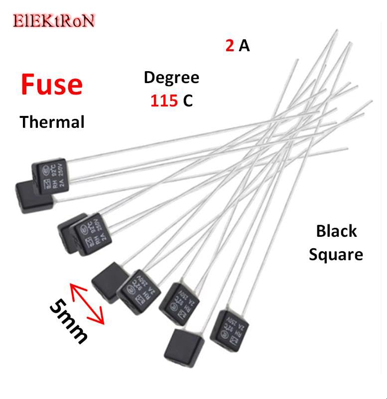 Generic - عدد 5 قطع من فيوز حراري - Black Square Fan Motor LED Thermal Fuse 115C - 2A degree RH Temperature Fuse