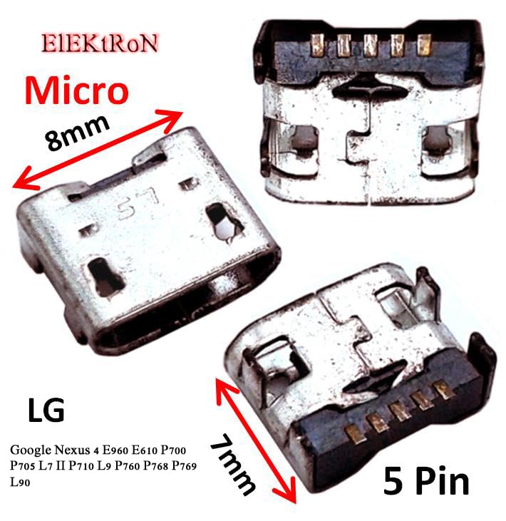 Generic - منفذ انثى 5P اس ام دي اس ام تي Micro Usb 2.0 مقبس شحن جاك نوع بي 5 دبابيس موصل صغير لإصلاح ال جي وجوجل نيكسس 4 E960 E610 P700 P705 L7 II P710 L9 P768 P769 L90، محول بديل، 5 قطع