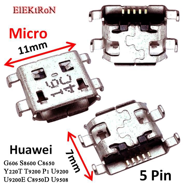 Generic - 5 قطع - منفذ انثى 5P اس ام تي مايكرو USB 2.0 مقبس شحن جاك نوع بي دبابيس موصل صغير اصلاح G606 S8600 C8650 Y220T T9200 P1 U9200 هواوي U9200E C8950D U9508 محول بديل أسود