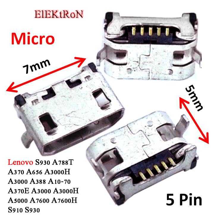 Generic - 5 قطع - منفذ انثى بي اس ام تي مايكرو USB 2.0 مقبس شحن جاك نوع دبابيس موصل صغير اصلاح لينوفو S930 A788T A370 A656 A3000H A388 محول بديل أسود