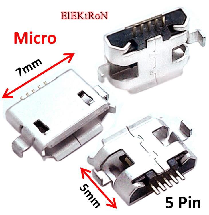 Generic - 5 قطع منفذ انثى اس ام دي تي مايكرو USB 2.0 مقبس شحن جاك نوع بي دبابيس اصلاح صغير MB525 ME525 ME525 محول بديل أسود