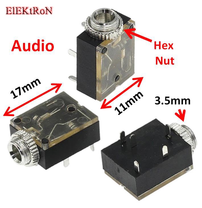 Generic - 5 قطع موصل مقبس منفذ انثى لاصلاح الصوت PJ324M دبابيس 3.5 ملم ستيريو PJ-324M لوحة PCB حامل لسماعة الراس 3.5 مع محول بديل صامولة