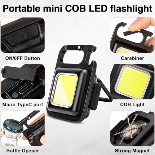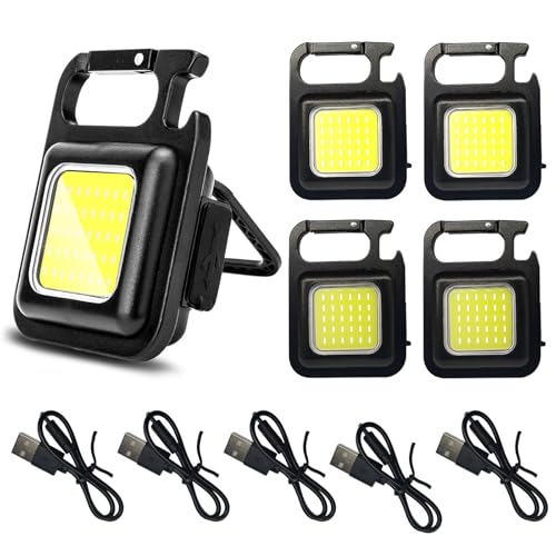 YanGetifit - سلسلة مفاتيح للعمل باضاءة ساطعة مع دعامة قابلة للطي وفتاحة زجاجات وقاعدة مغناطيسية لصيد الاسماك والمشي والتخييم من 5 قطع