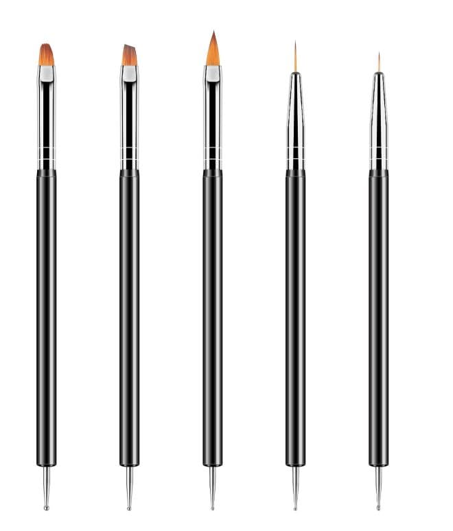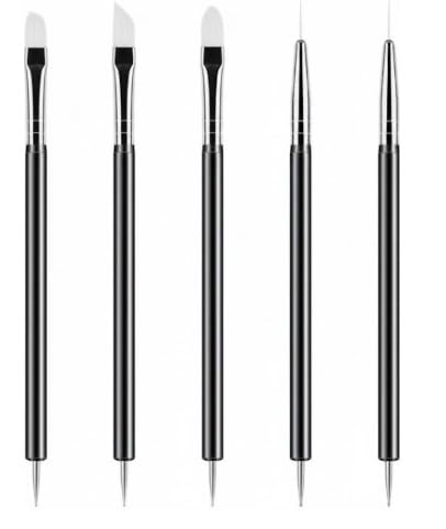 Generic - طقم فرش طلاء أظافر مكون من 5 قطع، أدوات تنقيط أظافر وأدوات تجميل مزدوجة الأطراف، طقم فرش احترافي لفن الأظافر، فرش لرسم الخطوط والقلم بيد سوداء وشعيرات بلون أبيض