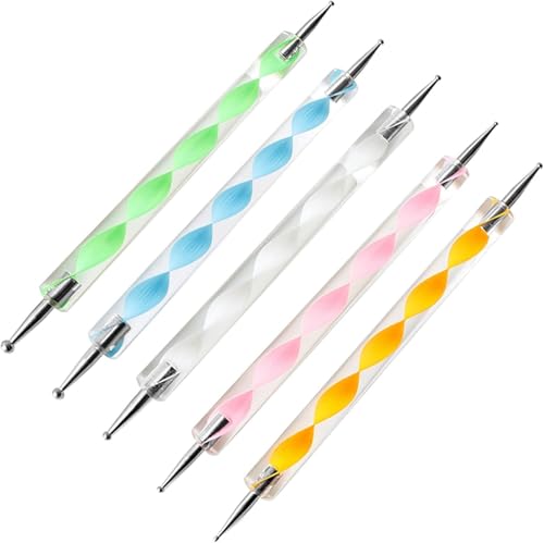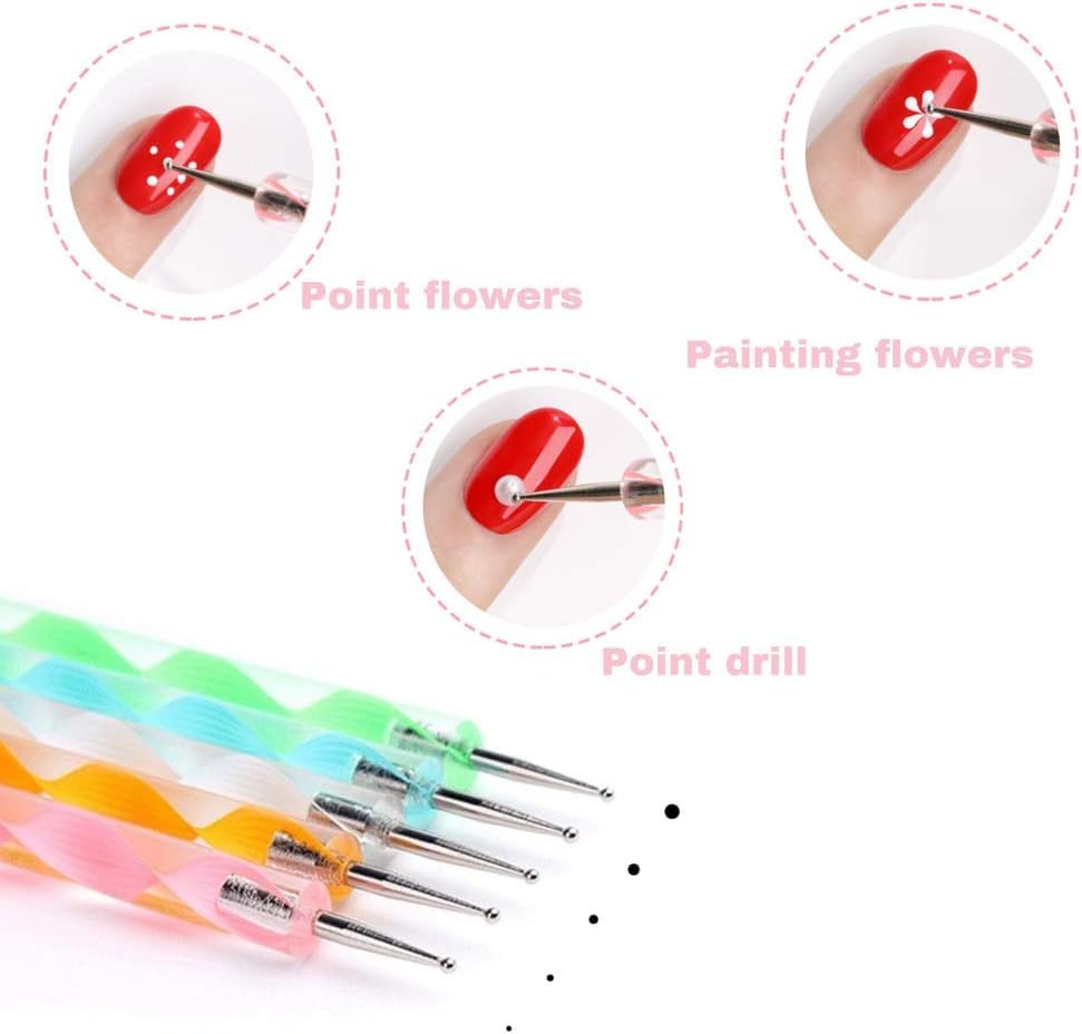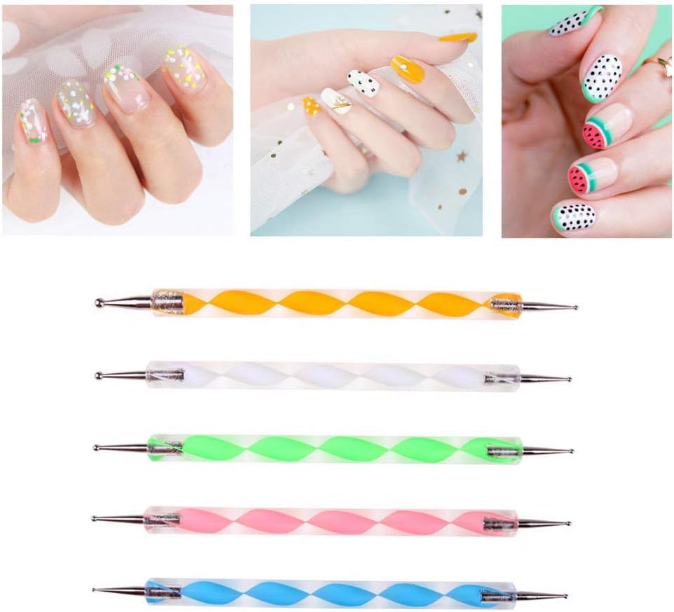 Generic - قلم تنقيط الاظافر الرخامي، أداة نحت طلاء الأظافر المنقطة، مجموعة طلاء الأظافر المنقطة، متعددة الألوان، 5 قطع