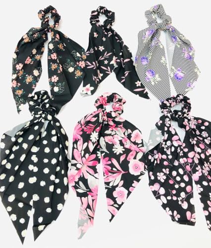 - تصميم متعدد الاستخدامات: طقم توك شعر عصرية بفيونكة تتميز بنقشات زهور متنوعة على خلفية سوداء، مثالية لتسريحات الشعر المختلفة.