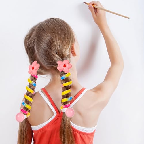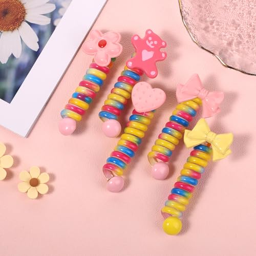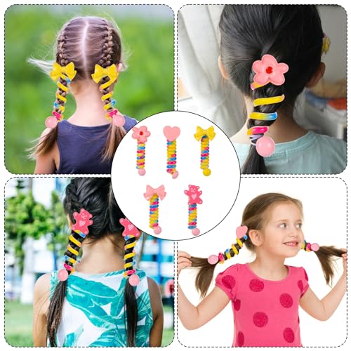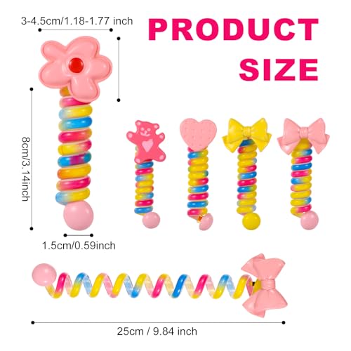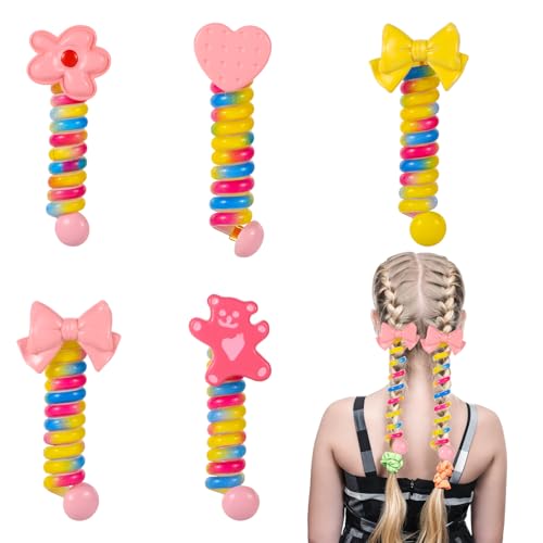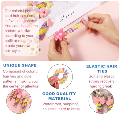 lasuroa - 5 قطع من ربطات الشعر السلكية للهاتف، ربطات شعر حلزونية ملونة على شكل فيونكة على شكل زهرة ودب وقلب، ربطات شعر مرنة انيقة لا تتجعد للشعر الرقيق للاطفال والنساء والاطفال