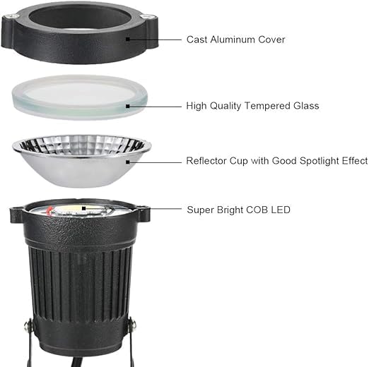 - سطوع فائق: باستخدام أربعة مصابيح ليد سي او بي ممتازة بقدرة 5 وات (500 لومن لكل مصباح) وعدسة زجاجية ذات نفاذية عالية، يمكن أن توفر أضواء كافية لحديقتك وساحتك وممرك، لا مزيد من القلق بشأن الظلام عند عودتك إلى المنزل.