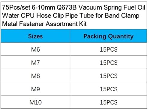 Generic - مشابك انابيب وخراطيم وحدة المعالجة المركزية للزيت والوقود والماء موديل Q673B باحجام 6-10 ملم - مجموعة من 75 قطعة
