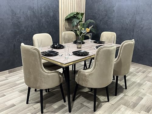 Generic - طقم سفرة مودرن 6 كراسي قطيفة مع ترابيزة مستطيلة 180×90×73 سم سطح كونتر وقوائم زان