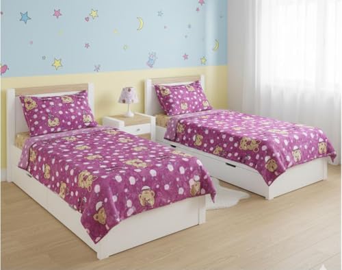 Generic - طقم دفاية سرير أطفال 6 قطع، دفايتين 210×220 سم 1300 جرام، خداديتين 50×70 سم، مخدتين 50×120 سم، بنفسجي مع دببة وورود